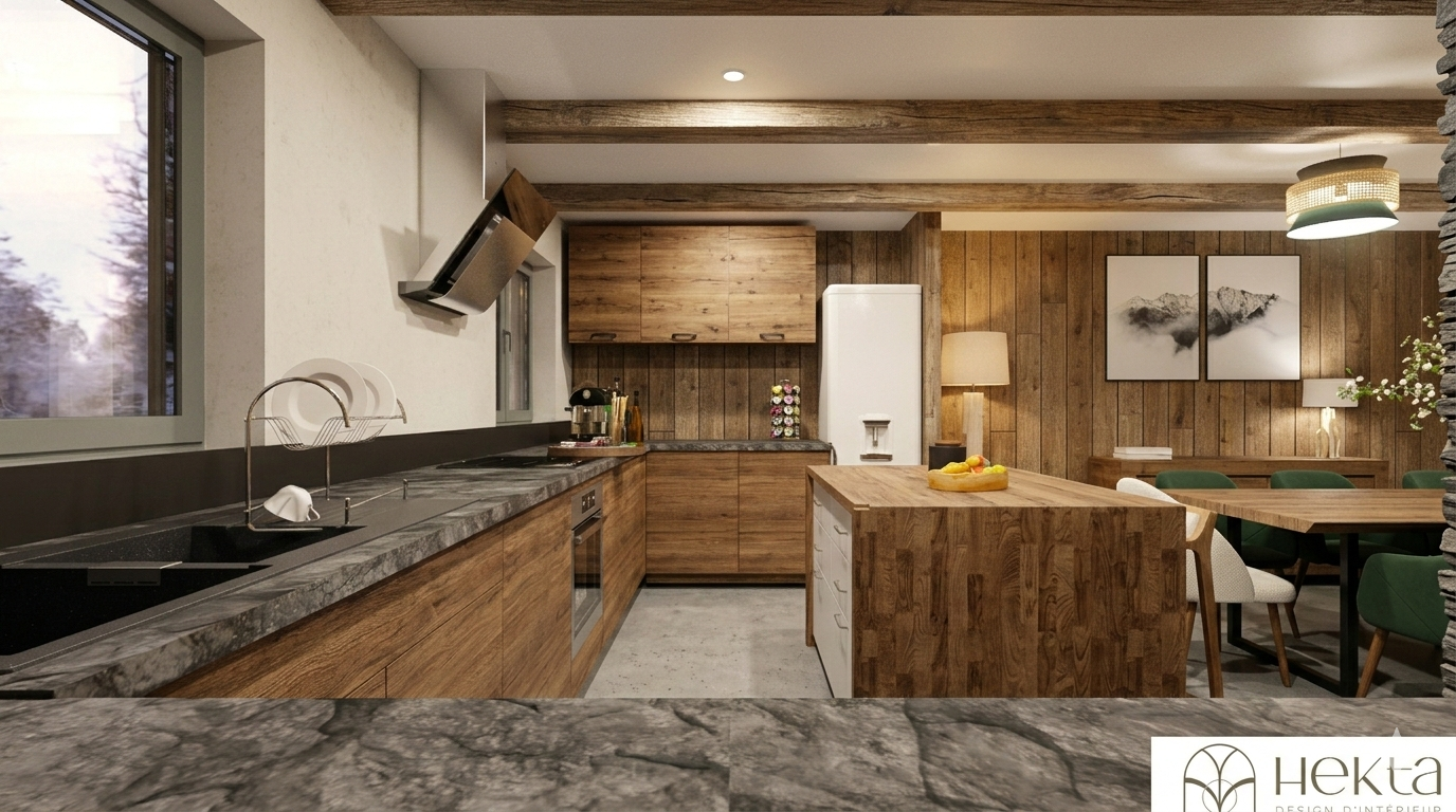 Situé au Mont-dore, ce projet a consisté en la conception et la création complète d’un chalet de 130 m² réalisée par l’agence Hekta, architecte d’intérieur. Nous avons élaboré un projet global comprenant les plans d’aménagement, l’optimisation des espaces et la modélisation du chalet, ainsi que la constitution du dossier d’urbanisme avec certificat d’urbanisme et permis de construire. Grâce à cet ensemble de documents précis et détaillés, les clients ont pu disposer d’un dossier complet leur permettant de suivre et piloter eux-mêmes la réalisation des travaux en toute sérénité.